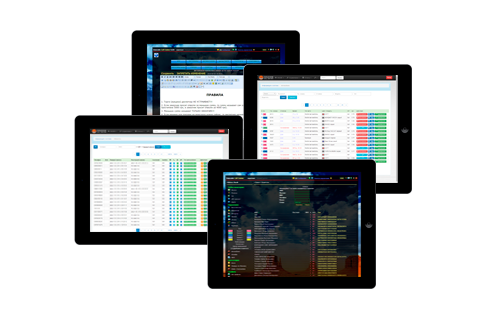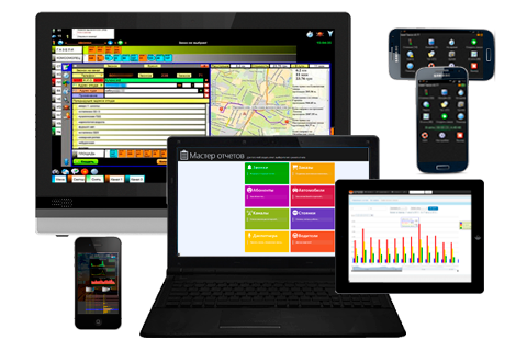 Управление комплексом осуществляется по web интерфейсу с компьютера или с мобильного телефона. WEB Интерфейс программы адаптирован для iPhone, iPad. Система включает в себя множество графиков и отчетов, необходимых для Вашей службы. В отчетах по заказам присутствуют различные фильтры. В том числе и по группам (Каналам). Оценки работы оператора по приему сообщений (отбросы, кол-во принятых, колво успешных), считаюстя принятые и отданные, также есть граффик работы диспетчеров и функции расчета З/П. Бухгалтерия расчитана под разные варианты приёма платежей (отчет, пополнение через терминал).