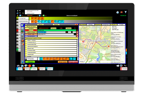 Отображение на карте автомобилей, звонки в реальном времени, отображение рабочего места диспетчера.